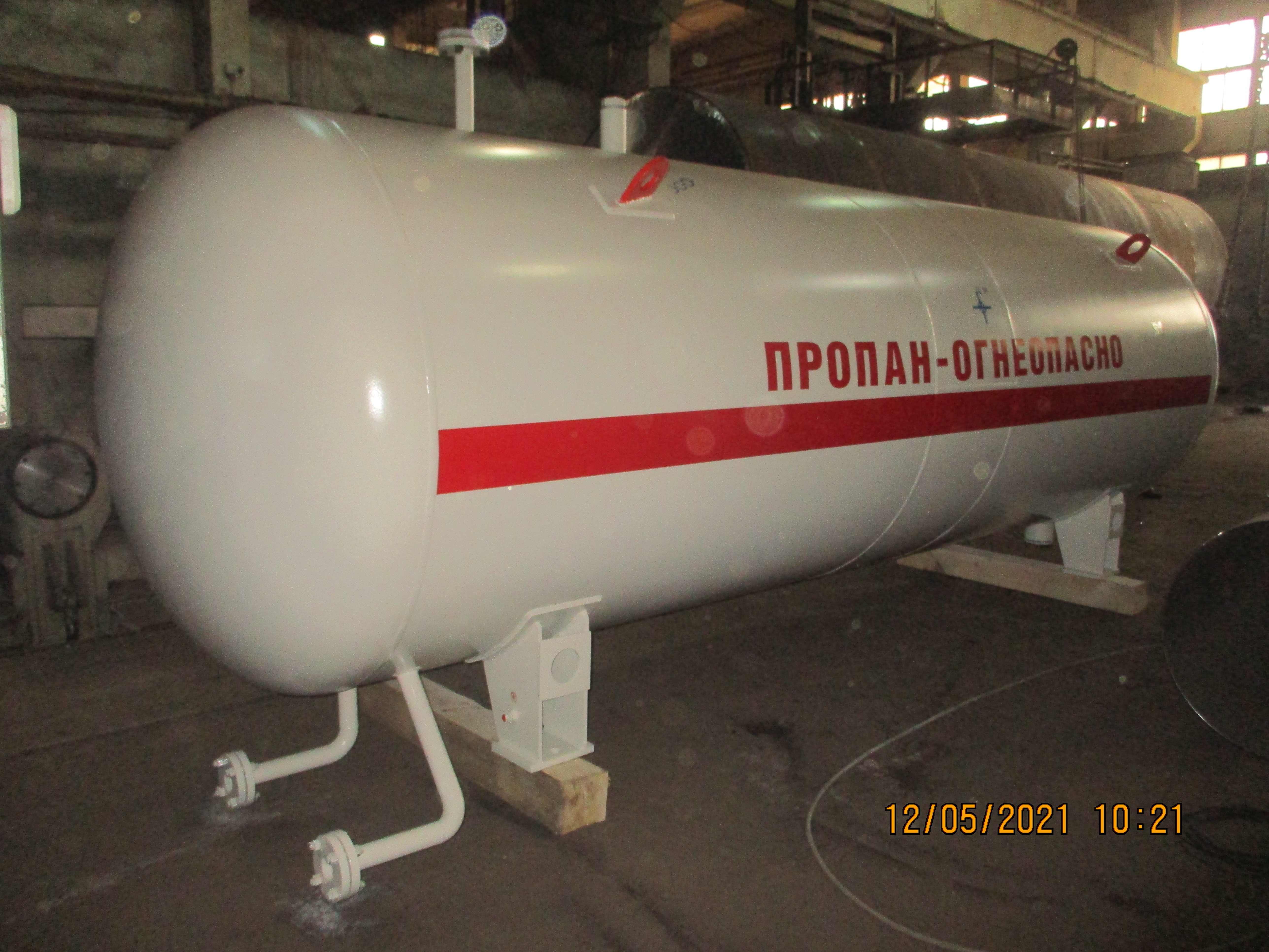 Газовая емкость для сжиженного газа представляет собой горизонтальный цилиндрический сосуд с эллиптическими днищами, который имеет несколько штуцеров (для наполнения, отбора жидкой и газовой фазы, для установки уровнемера и предохранительного клапана, для люка и т.д.)